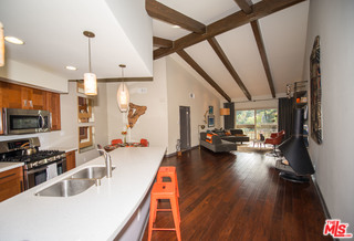 Remarks: Coveted top floor unit with vaulted ceilings and exposed wood beams. This unique condo ushers its visitors through a low-slung entry opening up to a soaring interior, a classic architectural design borrowed from Frank Lloyd Wright. It has been totally updated from floor to Ceiling! Distressed Acacia engineered wood flooring, Hand-finished, stained ceiling beams, Double paned/glazed windows, Fresh paint throughout, Quartz countertops and backsplash, Stainless steel appliances, Dual stainless steel kitchen sink with garbage disposal, Soft-close drawers. Custom designed closet with bi-fold glass doors, Enlarged bedroom window, Dual vanity bathroom sinks, Large floor-to-ceiling tile walk-in shower, Custom wood hall ceiling, Central air, The gated complex has two swimming pools, Hot tub, Tennis courts, Gym and two pool tables. Access to private hiking trail with Hollywood sign. Walking distance to Ford Theatre and Hollywood Bowl. Pet friendly building. HOA pays Trash and Sewer only. | |||||